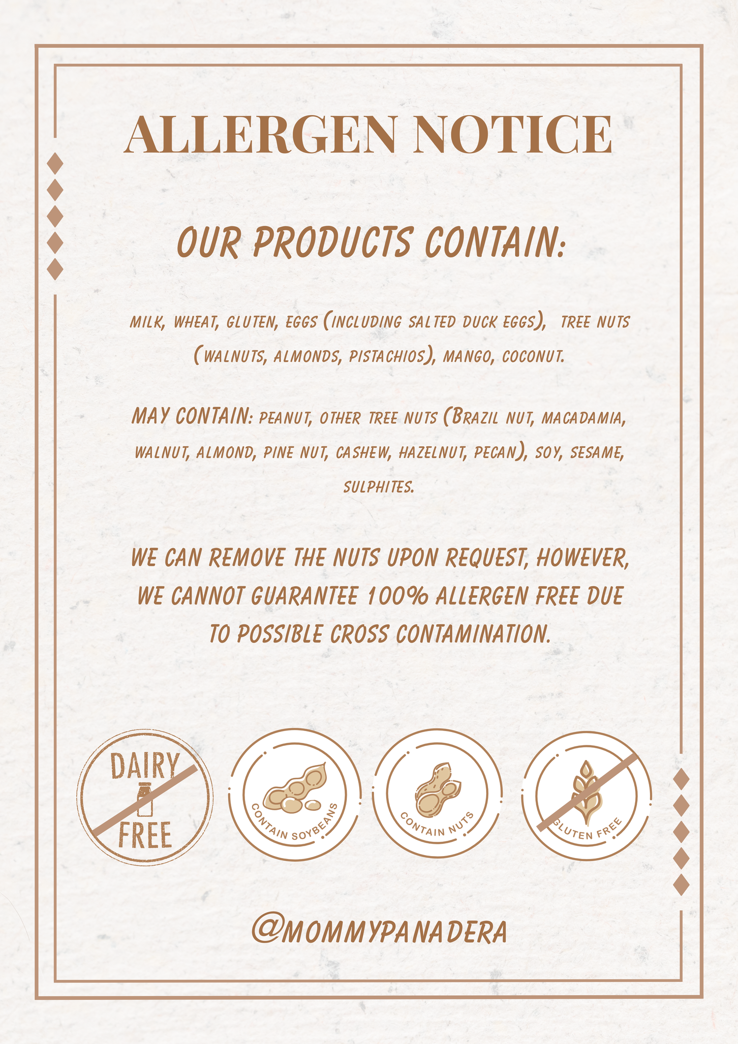 *Products are prepared in a kitchen that handles multiple allergens; cross-contact may occur. If you have allergies to any of the above, please do not order.